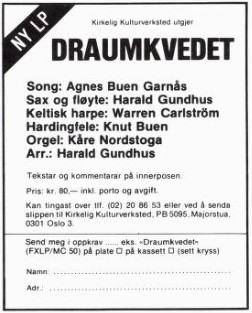 Garnås, Agnes Buen. 1984. Draumkvedet Oslo: Kirkelig Kulturverksted. FXLP50.